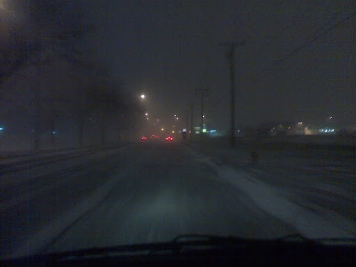 On Tuesday we had a decent snow fall. My Tuesday night team moves to different bars every so often. Last week we were at a bar I'd been to once in my life.